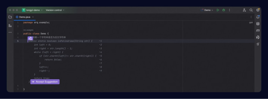- 行/函数级实时续写:在编码的过程中,根据上下文和当前语法,为你自动预测和生成建议代码,你只需单击 Tab 键即可采纳。