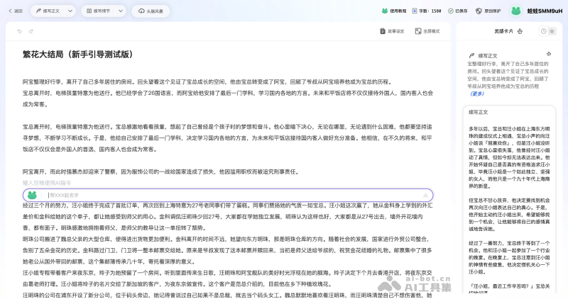 - 多类型小说创作:可辅助用户创作出各种类型、风格、主题的小说,无论是科幻、悬疑、奇幻,还是现实、幽默、言情,蛙蛙写作都能满足不同的写作需求