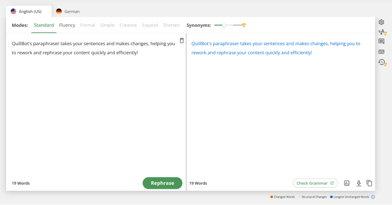 如果用户升级到高级版本,还可以访问 Quillbot 的抄袭检查器(Plagiarism Checker)以及更快的处理速度和更高级的语法重写。