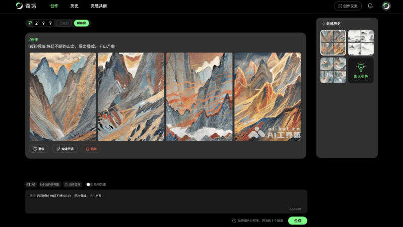 - 艺术创作者:对于喜欢绘画和艺术创作的人士,奇域AI提供了一个便捷的平台,让他们能够通过文字描述快速生成具有中式美学的绘画作品。