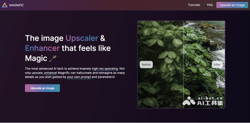 Magnific AI是一个功能和算法非常强大的AI图像放大变高清的工具,支持将图片最高放大到10000×10000像素(10K分辨率)。Magnific AI转换放大后的图片拥有高质量的细节,适合用于如高分辨率的打印和图片处理。该AI扩图工具虽然需要付费使用,但如果你对图像分辨率有高要求,值得一试。