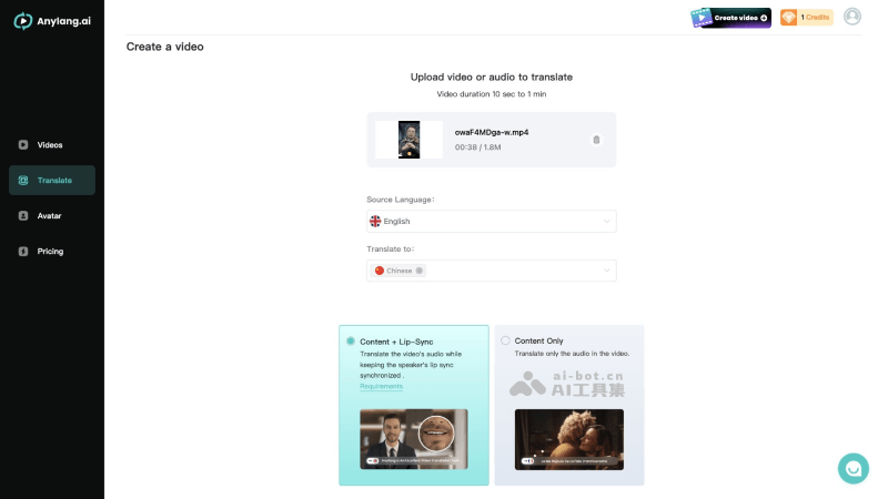 - 选择是否同步嘴型还是只翻译视频内容