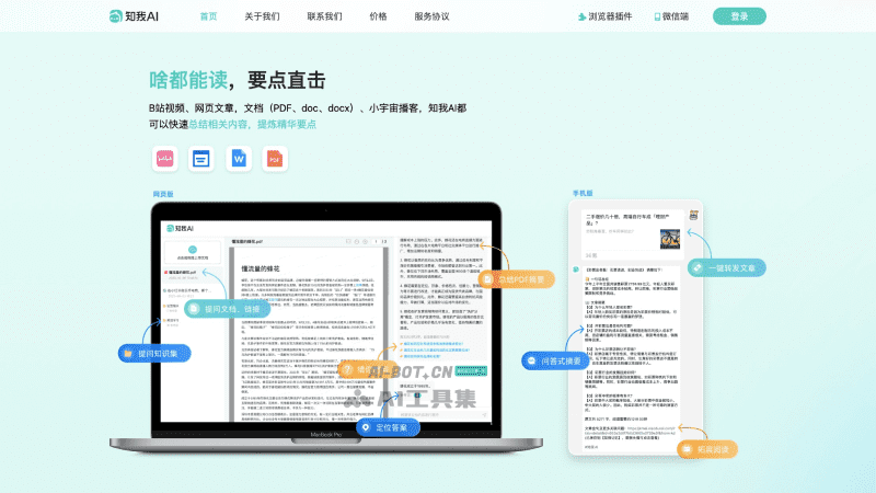 - 阅读和总结各种类型的内容,包括B站视频、网页文章、PDF文档、小宇宙播客等,自动总结摘要