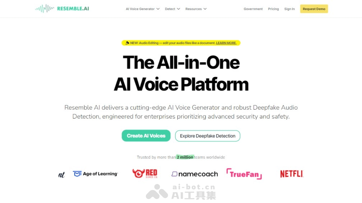 - 内容创作:内容创作者可以用 Resemble AI 为视频、游戏和多媒体项目生成定制化的声音,增强观众的沉浸感和体验 。
