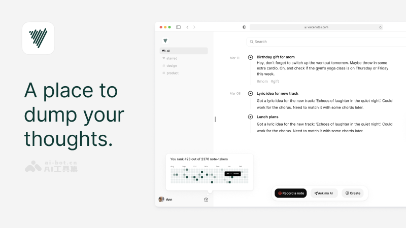 - 个性化AI助手:Voicenotes的AI助手可以根据用户的使用习惯和偏好提供个性化服务,如笔记互动、智能提醒、内容推荐等。
