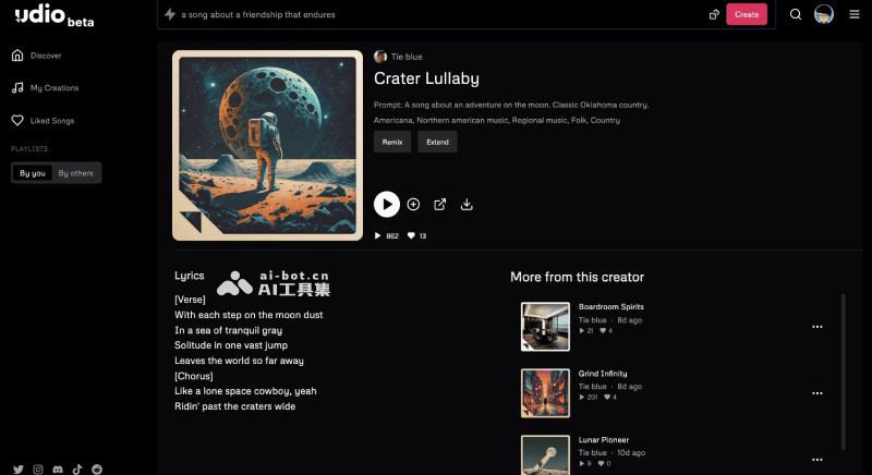 - 社区分享与合作:Udio内置社区功能,用户可以将创作的音乐分享到社区,获取反馈,与其他音乐爱好者进行交流和合作。